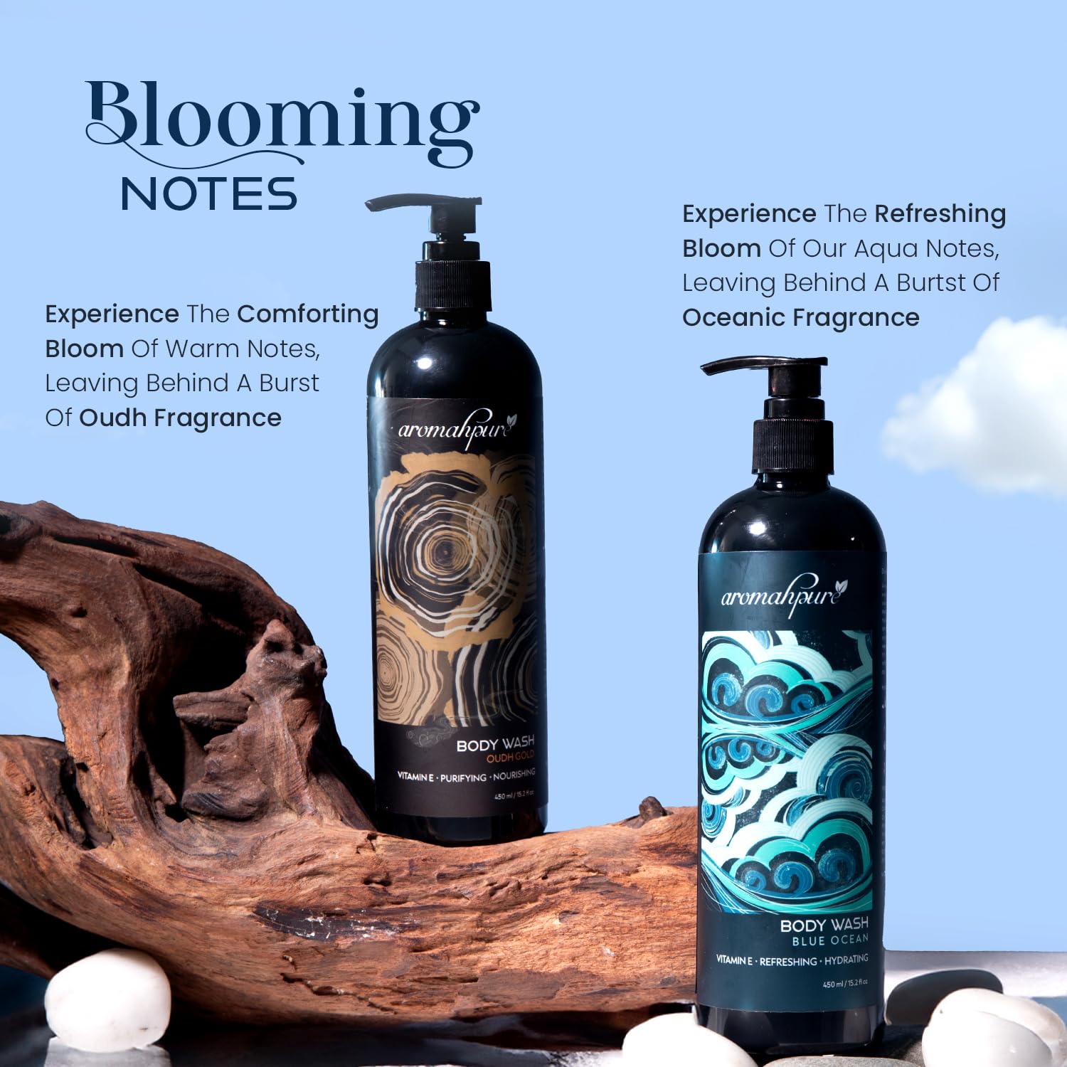 Blue Ocean & Oudh Gold – Introducing Aromahpure’s exclusive Ocean and Oudh Body Wash Combo Pack, where the invigorating freshness of the ocean meets the exotic allure of oudh, offering a dynamic duo of indulgence for your daily bathing ritual.